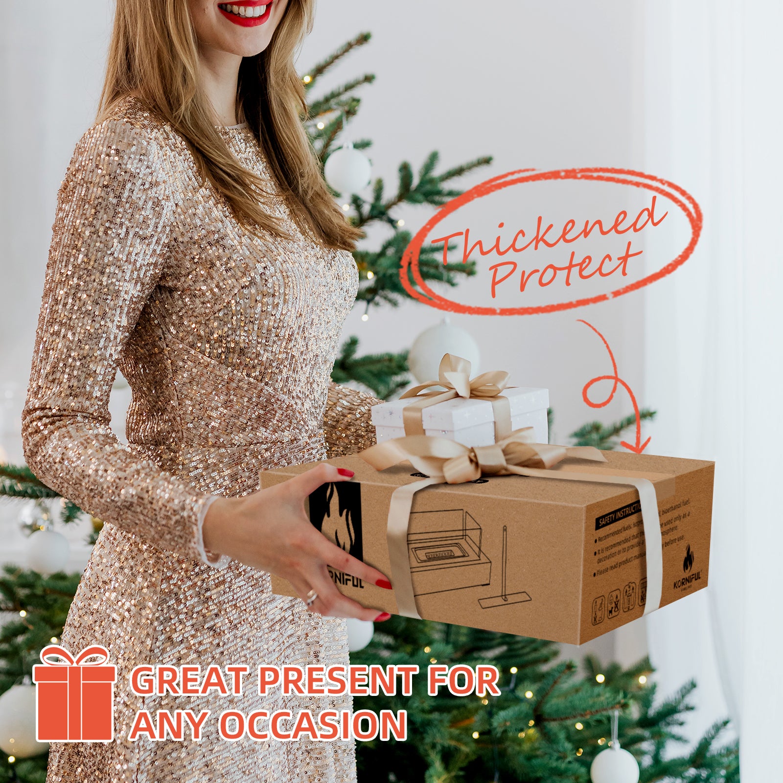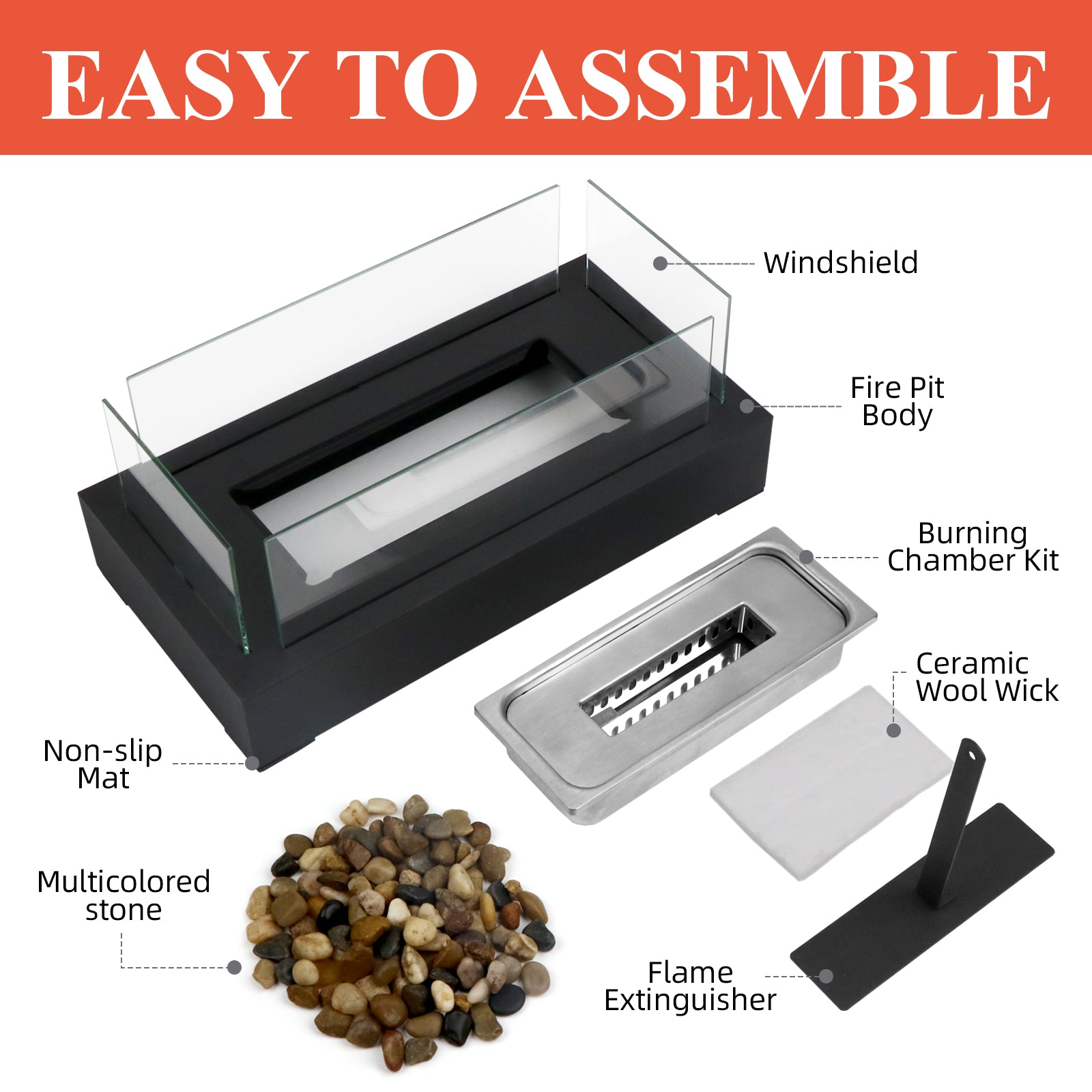 KORNIFUL Tabletop Fire Pit 4-Glass windshields with decorated pebble stones