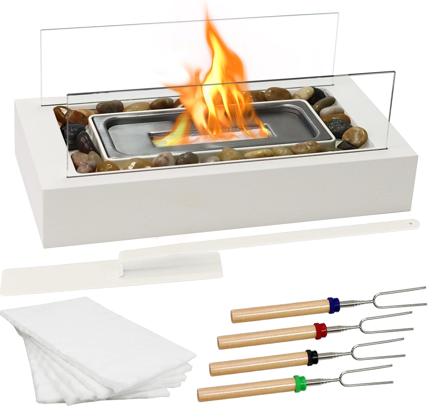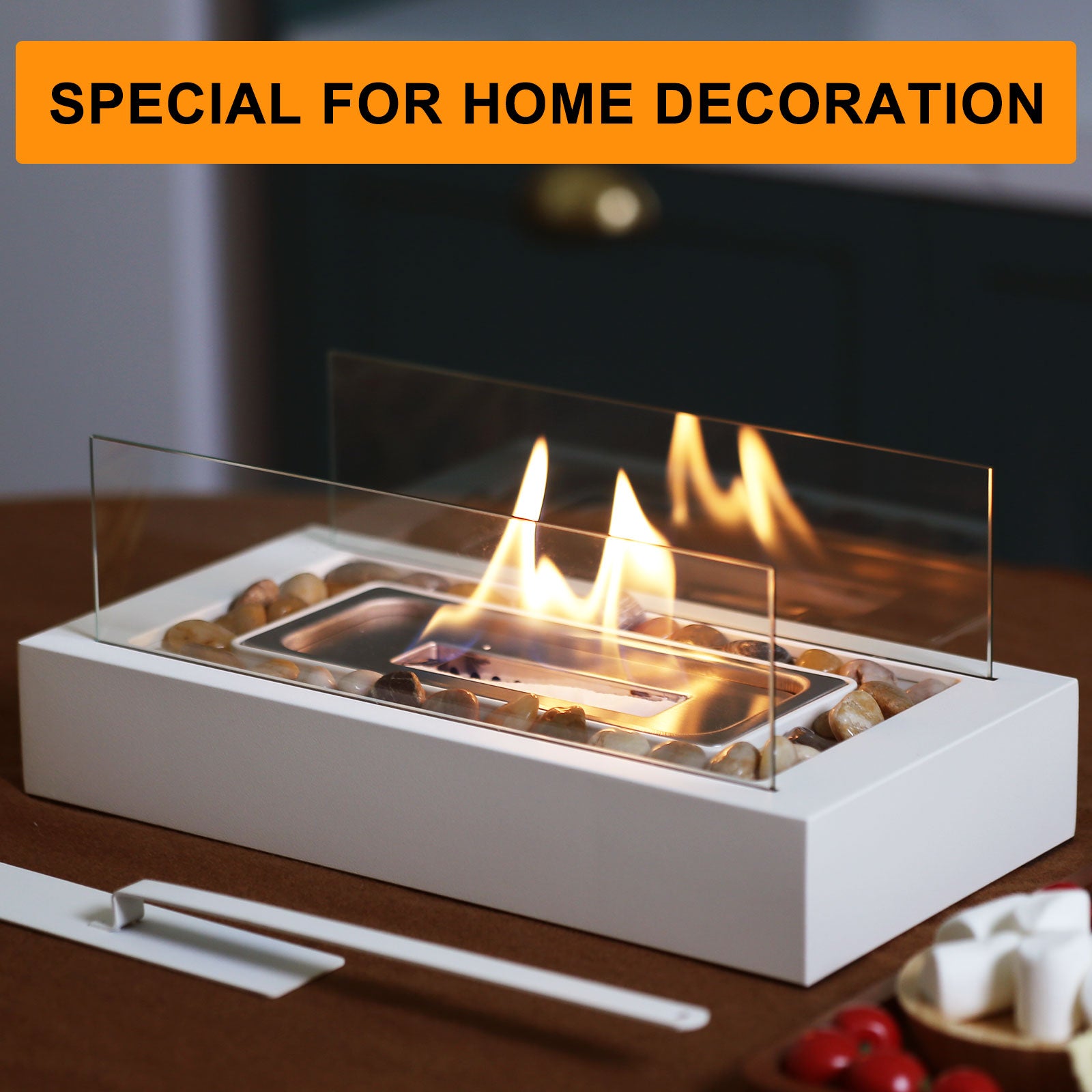 Tabletop fire pit is carefully designed to work well both inside and outside. The attractive dancing flame has no ash or smoke so it can be put anywhere.
