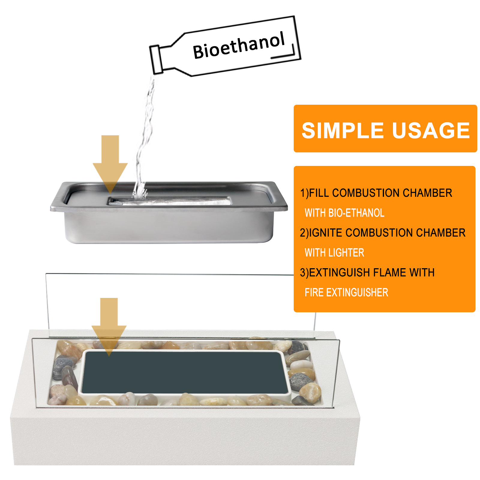 Use clean-burning, smokeless fuels such as bioethanol or isopropyl alcohol (at least 70% or higher). These are safe for indoor use, odorless, and produce a beautiful flame without harmful residue.